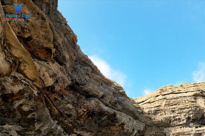 Hang Câu Lý Sơn hút mắt du khách với những ghềnh đá cao vút đến cả trăm mét. Những đường nét rất kỳ lạ và độc đáo hiện hiện trên các vách đá, trông rất đẹp mắt. Chúng được “ngẫu nhiên” chạm khắc do quá trình tác động của sóng và gió biển. Dần đà, làm nên kiệt tác thiên nhiên hùng vĩ.